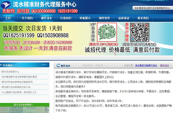《国际金融报》记者搜索“做银行流水”等关键词时,各类流水制作公司、服务中心铺天盖地。