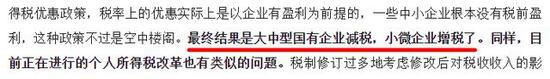 之后更是点名减税减在国企,然后把担子转移到了小微企业身上,毫不掩饰的打脸。