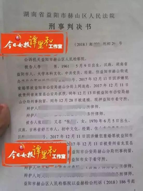 法院的判决书(这是一份由益阳市赫山区人民法院7月4日下发的刑事判决书。判决书中,李辉是和55岁的孟玲一起走过32年婚姻路的丈夫,而张茜,则是李辉一直坚称为“同事关系”的女人。)