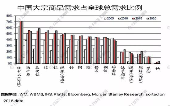 中国大宗商品总消费量约占全球总消费量的18.7%。根据对大宗商品中25种品种的调查,其中有19种品种消费量全球第一,其中,中国消费量占全球比重超过40%(含40%)的有8个,包括铁矿石、稀土、PTA、煤炭、甲醇、精炼铜、原铝、棉花。