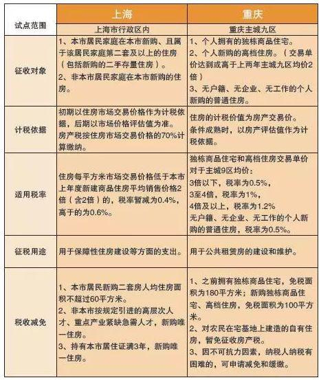 以上是大家对于方向的猜测。其实,上海和重庆从2011年就开始试点征收房产税了,各地新房地产税很可能会以此为参考。