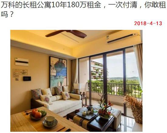 因此,一些响应政府号召推出长租公寓的企业,房租都相当高。比如万科在北京西二旗西北方向8公里的90平米精装修小三居,租金一次付清,10年180万起,请注意这还是“起”,也就是180万是最低价。还有一类是180平方米以上的复式四居室,月租金3万至4万之间,也要求十年付清,这就需要360万到480万了。