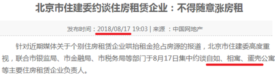 嗯,我知道,最近房租大涨已经引来了政府部门的注意。比如8月17日北京住建委、银监局、金融局、税务局约谈相关住房租赁企业,要求不得随意涨房租。