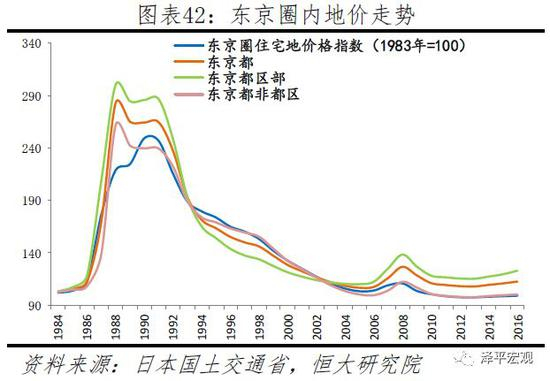 东京都区部地价在1988年见顶,见顶前五年上涨2倍,同时调整早、止跌快,2006-2016年累计上涨11.7%、为东京圈内部最高。东京都及东京都区地价在1988年见顶,较东京圈早2年、较日本整体早3年。在见顶的前五年,东京都区部房价上涨2倍,高于东京都的1.8倍和东京圈1.2倍。见顶后,东京都及东京都区部房价持续下跌至2005年,之后2009-2013年下跌,2014年开始回升。2006-2016年,东京都、东京都区部房价分别累计上涨5.6%、11.7%,东京都非区部房价基本持平,东京圈房价累计下跌4.1%。2016年,东京都、区部、非都区房价分别相当于其峰值的39.8%、40.9%、38.3%,与东京圈的39.7%非常接近。