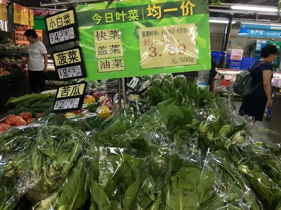 超市叶菜单价普遍上涨,8月28日上午11时,菠菜为8.49元/斤。