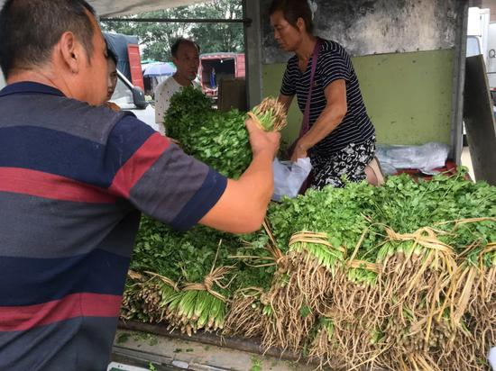 10时左右,又一位顾客购买了一棵芹菜,愉快地支付了2元,看着顾客离去的身影,孙大哥又嘟囔起来,“没办法,赔钱也得卖了。”