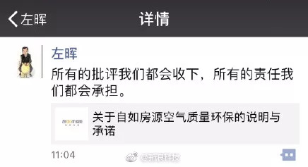 链家地产董事长左晖回应表示所有的批评收下,所有的责任承担。