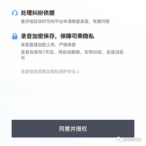 此外,录音协议还提到,录音信息将用为维护用户人身安全等重大合法利益,情况紧急又很难得到用户同意的。用于抽查检测用户是否存在违反平台用户规则的行为。用于系统分析,设计、开发、应用保护用户安全的辅助工具或产品。