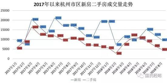 数据显示,8月杭州市区(含富阳、临安)新房成交仅成交9867套,这是5月以来首次跌破万套大关,与去年同期相比,下滑43.7%。