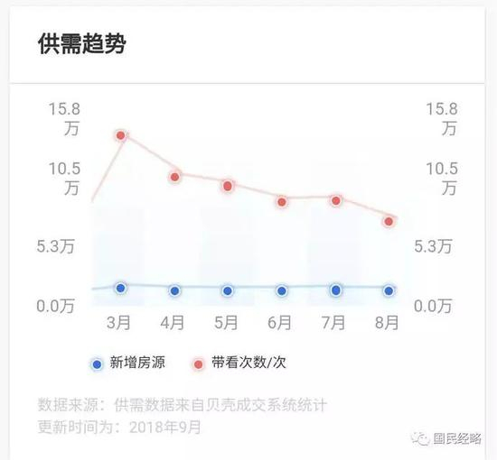 同时带看量从今年3月的1.23万次下滑到8月的8400次,下滑30%以上。