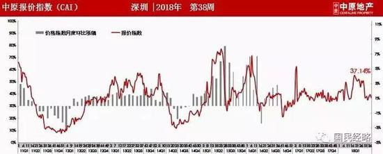 根据中原地产数据,9月下旬,深圳二手房报价指数继续下滑,仅为37.14%,接近这两年低点。