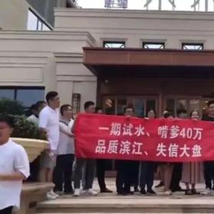 这一次仍是杭州。杭州某楼盘二期降价40万,老业主在现场打起横幅,要求“还我们的血汗钱”,有业主满脸不可置信: