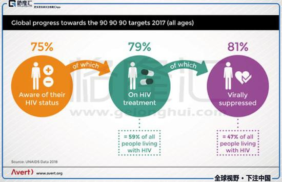 为提升全球对艾滋病防治的意识,世界卫生组织(WHO)自1988年起,将每年12月1日订定为世界艾滋日,联合国艾滋病规划署(UNAIDS)代表在《国际艾滋病大会2014》提出2020年实现“三个90%”的目标,即90%艾滋病毒感染者自身知情,90%确诊艾滋病毒感染者获得抗逆转录病毒治疗及90%接受治疗者体内病毒受到抑制。然而,到2017年,距离目标依然有一定的距离...