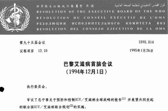 1994年,中国卫生部长在巴黎全球艾滋病防治政府首脑会议宣言上签字,承诺采取各种有效手段迎战艾滋病。