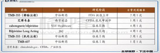 CraigI.Coleman在研究患者药物依从性时发现,能严格遵从医嘱用药的大概只有57.1%-76.3%的患者,且用药频率越高、依从性越差。目前抗艾药的使用基本上都是需要每天服药,总的来看频率还是比较高。部分企业从长效型制剂上寻求突破口,显着降低用药频率,大大提升患者用药依从性。长效化是目前艾滋病治疗研发中比较明确的方向。
