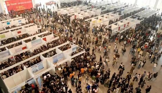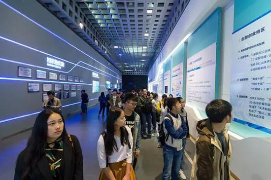 2016年10月13日,来自武汉9所高校的上百名大学生参观光谷展览中心。图/任勇