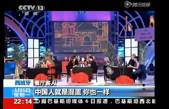 像这次瑞典电视台的辱华节目在西方可不是孤例,例如西班牙电视五台,在2013年和2014年都相继播放丑化中国人节目,什么中餐厅用人肉,猫肉做菜,节目里还挂上“华人与狗不得入内”的招牌,更用各种语言丑化中国人。中餐厅的服务员也是辫子男,动作夸张像个小丑。