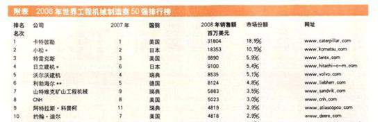在工程机械领域,根据英国KHL旗下的《国际建设》的全球工程机械50强的排名,