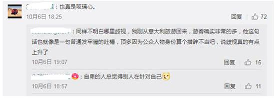 如此明显的歧视言论,但是在微博上却有各种言论在讽刺国人玻璃心,还有人说“不明白哪里歧视,说歧视真的有点上升了”,说“自卑的人总觉得别人在针对自己”