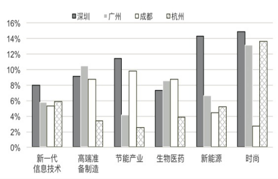 图为各城市新一代信息技术产业关注占比图图片来源:《宏观经济管理》2018年第7期