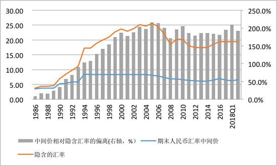 注:相对隐含汇率的偏离为正,代表汇率高估;为负,代表汇率低估。