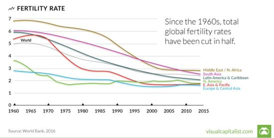 越来越多的经济学家开始发现,相比于全球人口过多的忧思,更迫切的问题是全球主要经济体的人口日益呈现萎缩的趋势。生育率是用于衡量人口稳定的重要指标,总和生育率是去除了地区、结构因素,专指15到44岁的育龄妇女平均生育的孩子数。这一数值不能太高,否则就会令住房、教育等资源供应紧张;也不能过低,否则会影响适龄劳动更替,纳税人减少、老龄化会侵蚀一个社会的健康、养老社会安全网。