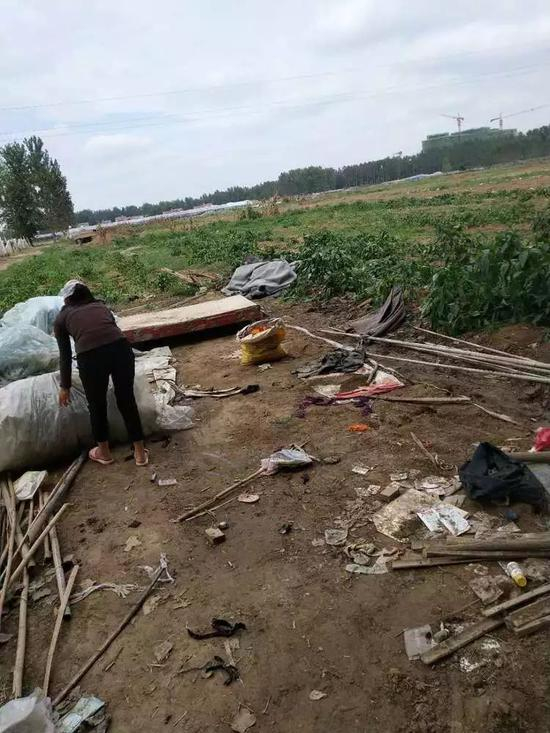 王楼村的耕地被突然铲平后,村民们正在收拾地里的塑料大棚。
