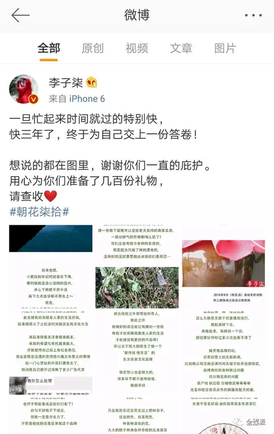 8月5日,古风美食博主李子柒在微博上发9图宣告同名天猫旗舰店开幕,动容地讲述了自己漫漫3年的成长路:2012年,奶奶生病,毅然决然重返乡村;2015年,为宣传淘宝店,录制“日食记”,凭借着“小森林”式的唯美镜头成为网红中的一股清流;2017年,签约MCN微念科技;2018年,攒粉1305万,重回电商战场,打造东方美食文化品牌。