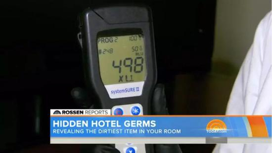 遥控器都检测出了极高水平的细菌,其中最高的读数是498。截图自NBC
