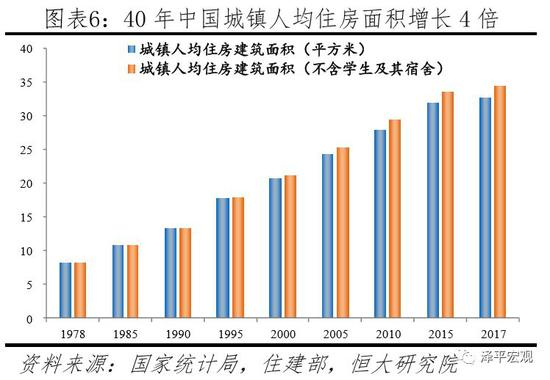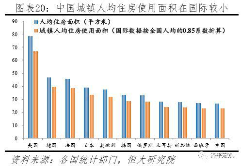 因此,如果以人均使用面积28平即人均建筑面积40平为标准算,未来中国城镇人均住房面积存在约22%的改善空间。