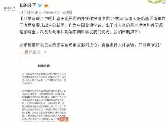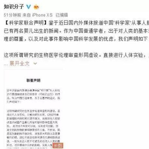 到26日晚,中国和世界多个国家的科学家陆续发声,对贺建奎所做的实验进行谴责,或者表达保留意见。