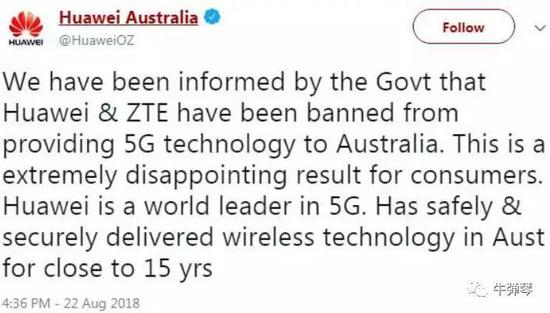 在推特上,华为澳大利亚公司当时的一份简短声明这样说: