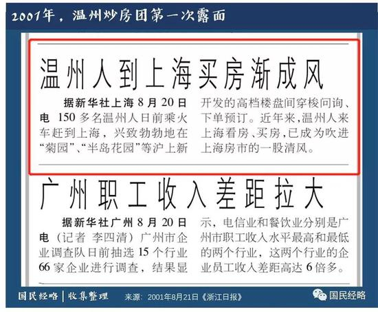 2001年,温州炒房团首次现身。这年8月,一个由157个温州人组成的“看房团”携5000万资金奔赴上海,一次性购房100多套。从此之后,温州炒房团声名传播于大江南北。