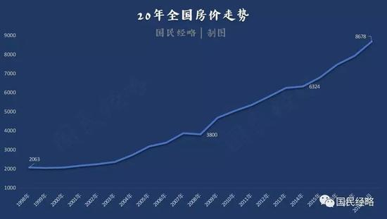 这20年来,房地产始终一路向上,即便有2008年和2014年的短暂波动,也未影响其上行行情。