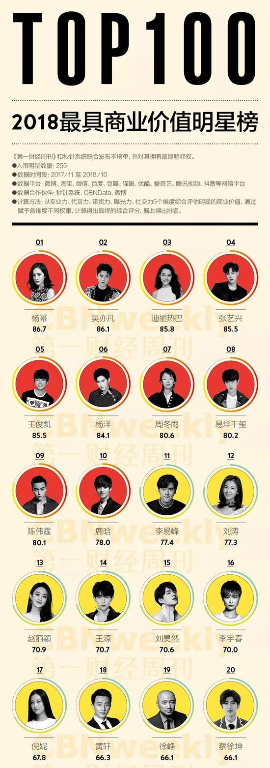 最具商业价值明星top100揭晓(今年明星可能都不想太靠前) |CBNweekly