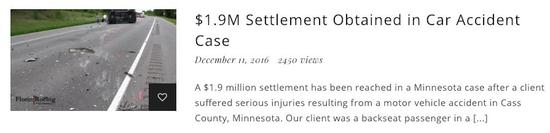 比如这个,2016年,为一起车祸争取到了190万美元赔偿