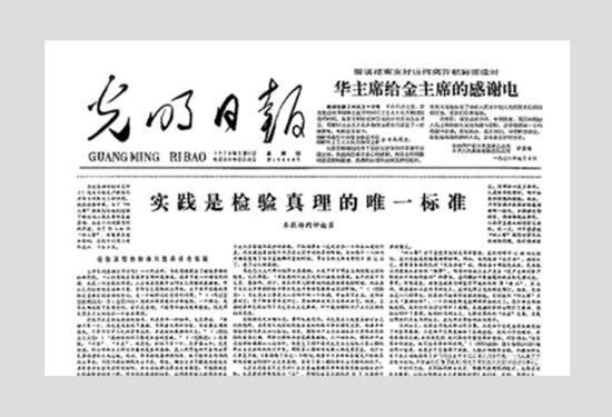(资料图:1978年5月,《光明日报》刊发评论员文章——《实践是检验真理的唯一标准》,旋即在中央、地方及军队报纸广泛转载, 在全国上下引起关于真理标准的讨论。)