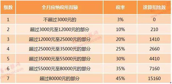 个人所得税预扣率(适用居民个人工资、薪金所得)