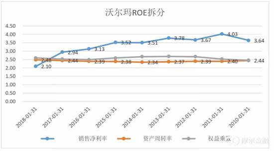 高周转模式的典型企业如沃尔玛,其净利率只有贵州茅台的二十分之一,但是靠着高周转和高杠杆,沃尔玛的ROE一直保持在15%-25%之间,但是从2015年开始,沃尔玛净利率一直下滑,2018年ROE也下滑至13%。