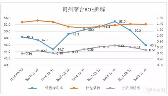 高净利率的代表有贵州茅台、恒瑞医药等,比如贵州茅台的净利率一直维持在45%至55%之间,正是这种高净利率带来了贵州茅台25%以上的ROE。高净利率最容易带来高ROE,但是高净利率很难维持,除非是产品竞争力强或者品牌强大(如奢侈品)。