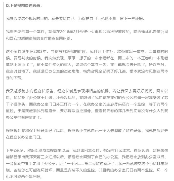 案件承办法官疑似自述视频流出: