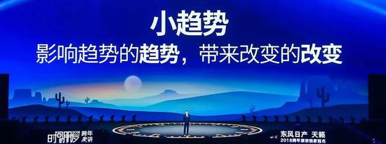 整整100天前,我们发布了今年跨年演讲的主题:小趋势。对小趋势最简单的理解就是不能随大流。请大家看看这三个字——“小趋势”。我判断,这个词会成为2019年的流行词。因为一张通票吃遍天的潮流结束了,我们必须学会用新的方法,找到小趋势。
