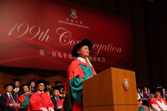 去年5月,马云获颁香港大学名誉社会科学博士学位。他在演讲中回忆起创业经历:我们犯了无数错误,唯一做对的一件事就是“never give up!”