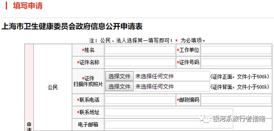 点击“卫健委”进入后,出现一个政府信息公开申请表。任何一个公民或法人,提供简单信息,就可以向政府申请信息公开啦。