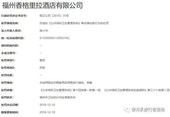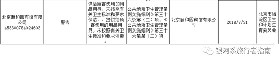 原来早在2018年7月,颐和安缦就因为酒店用品用具未按照卫生标准和要求消毒,而被处罚过,当时的处罚是“警告”。
