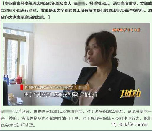 因为贵阳喜来登也是“再犯”。2018年6月,贵州电视台《百姓关注》曝光了几家酒店的卫生问题,其中就包括贵阳喜来登贵航酒店,同样是拿着浴巾当抹布等问题,当时在贵阳震动很大,贵阳喜来登酒店方面各种表态