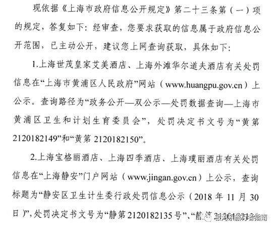 上海市卫健委回复称,申请的信息已经主动公开,并给出了具体查询的路径和处罚决定书文号
