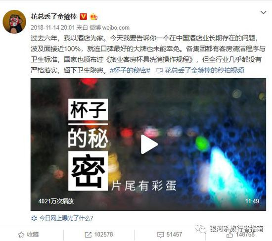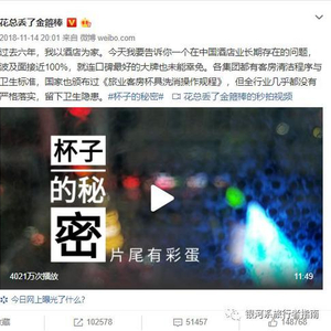 2018年11月14日晚,@花总丢了金箍棒 发布视频,曝光了十几家酒店的卫生乱象,引发轩然大波,全网震动。多地相关部门都表示要调查处理。