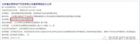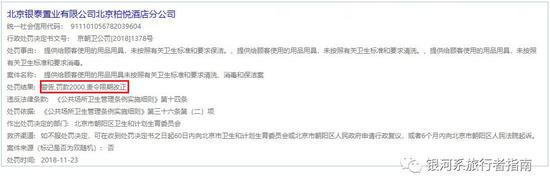 而罚款2000元以上,则意味着北京颐和安缦存在这样的问题——“逾期不改正,造成公共场所卫生质量不符合卫生标准和要求的,处以二千元以上二万元以下罚款”。