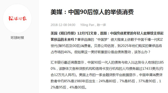 这篇文章流传颇广,中国90后从此“人均负债12.79万元”。
